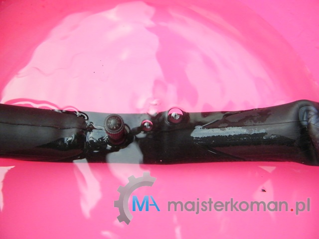- Po tym czasie wyciągnij dętkę, napompuj ją i podobnie jak wyżej, sprawdź szczelność połączenia w wodzie.