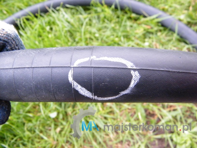 - Zaznacz przebicie kredą i dla pewności sprawdź, jak powyżej pozostałą część dętki oraz wentylek (też może nie trzymać).