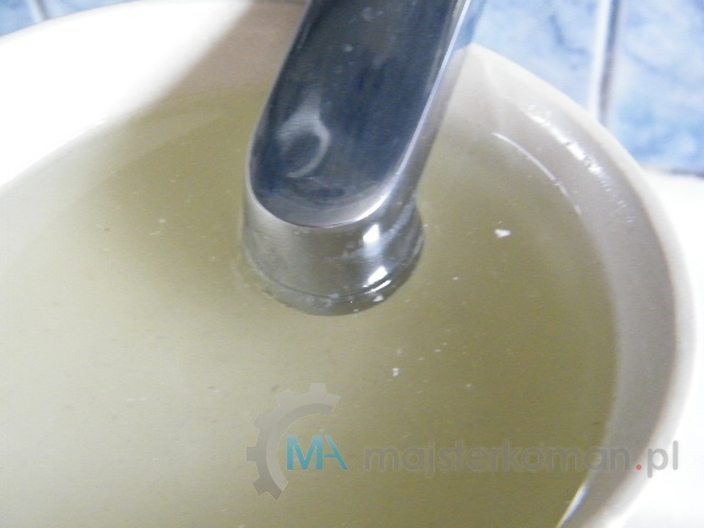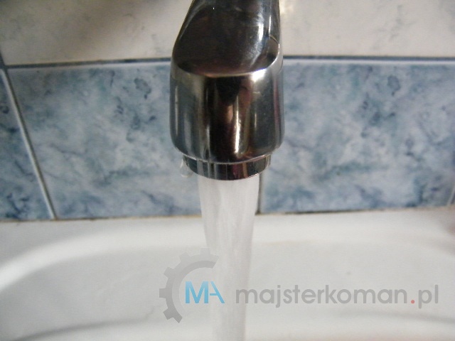 W pełni sprawny napowietrzacz – woda wypływa szybko równomiernym strumieniem