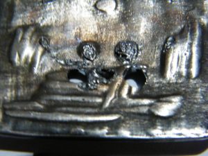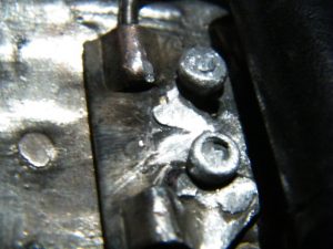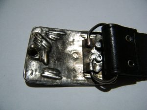 - Można zeszlifować wstępnie nieco łeb nitu, dzięki czemu nie będzie rzucał się tak w oczy i łatwiej wtopi się we wzór wytłoczony na sprzączce.