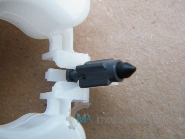 - Umieść iglicę w pływaku i wsuń sworzeń zawiasu.