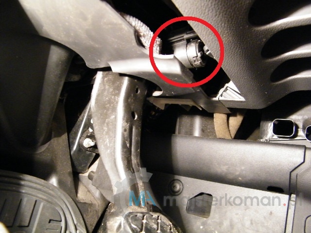 - Żeby zlokalizować przełącznik trzeba schylić się pod kierownicę, który znajduje się w górnej części dźwigni hamulca. Wcześniej dla większej wygody, maksymalnie cofnij fotel kierowcy.