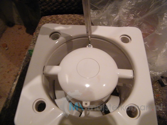 - Wyjmij wentylator, wykuj niezbędne bruzdy, wywierć dziury i umieść w nich kołki rozporowe.