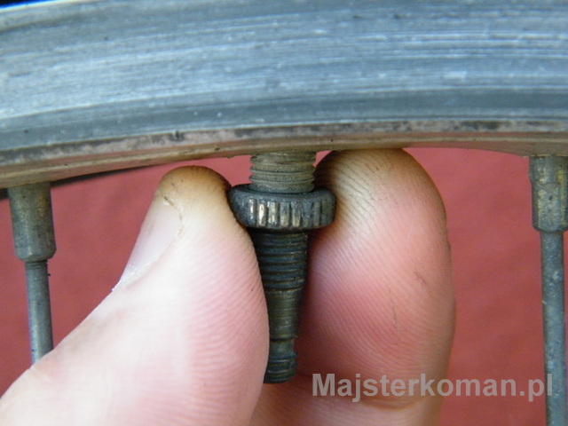 - Następnie wykręć całkiem nakrętkę zabezpieczającą wentyl i poluzuj ją. Opona schodzi wraz dętką, więc nic nie będzie blokować.