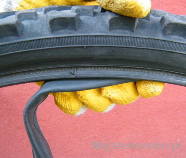 - Tak przy pierwszym jak i drugim sposobie zwróć uwagę na właściwe rozprowadzenie dętki. Nie dopuść do jej skręcenia.