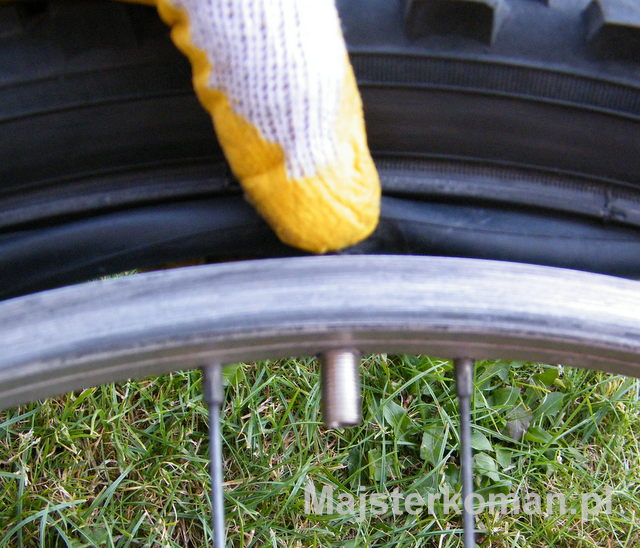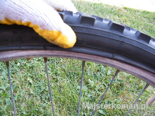- Na wszelki wypadek sprawdź gołymi palcami nową oponę ze środka czy nie ma wystających drutów, różnie to bywa, i ustaw w należytej pozycji ewentualne przesunięcia osłonę szprych.