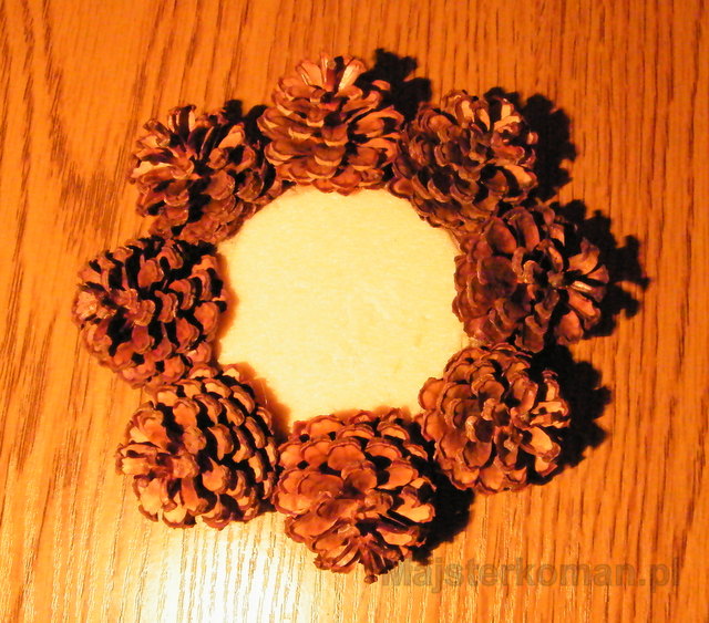 Przygotuj więcej szyszek, z których dobierzesz właściwe rozmiary. Ja zebrałem potrzebną ilość z własnych drzew.