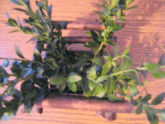 - Bukszpan, patyki, sianko pochodzą z mojego ogrodu. Zatem po części stroik wykonany jest według zasady coś z niczego :).