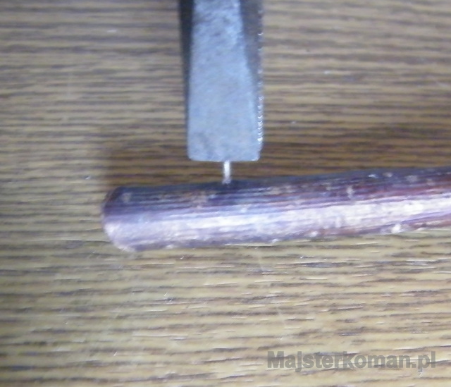 - Zalecam wciskanie gwoździka do niecałej połowy, bo podczas łączenia może się on jeszcze trochę wbijać w drewno. Jeśli za dużo się przesunie, będzie zbyt krótki na połączenie z drugą beleczką.