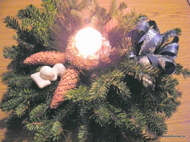 Nie zawsze jednak podczas przedświątecznego zaganiania jest na to czas i trudno znaleźć chwilę, aby wykonać coś odpowiedniego. Czasem wśród wszech otaczającej sztuczności jest to jedyna namiastka natury i pięknego zapachu lasu. Zatem chciałbym zaproponować jak zrobić w prosty sposób ładny, w większości naturalny stroik świąteczny.