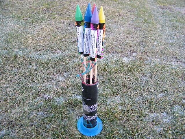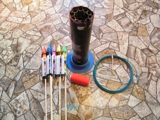 – rakiety, zużyta wyrzutnia, lont, nić lub sznurek, nożyk