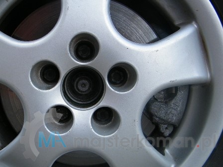 - Aby wymontować koło, najpierw poluzuj śruby po czym podnośnikiem unieś auto na tyle, by opona nie stykała się z podłożem. Wykręć śruby i ściągnij koło.