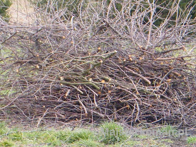 - Kolejnym etapem jest ułożenie drwa w określonym miejscu i usunięcie gałęzi. Umieszczam konary w pobliżu cyrkularki. Gałęzie będą częściowo palone na ognisku (może jakaś kiełbaska :)), a częściowo rozdrobnione i spalane w kotle.