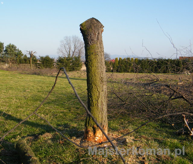 - Aby ułatwić sobie zadanie najpierw poprzycinałem konary; do ścięcia pozostał tylko pień.